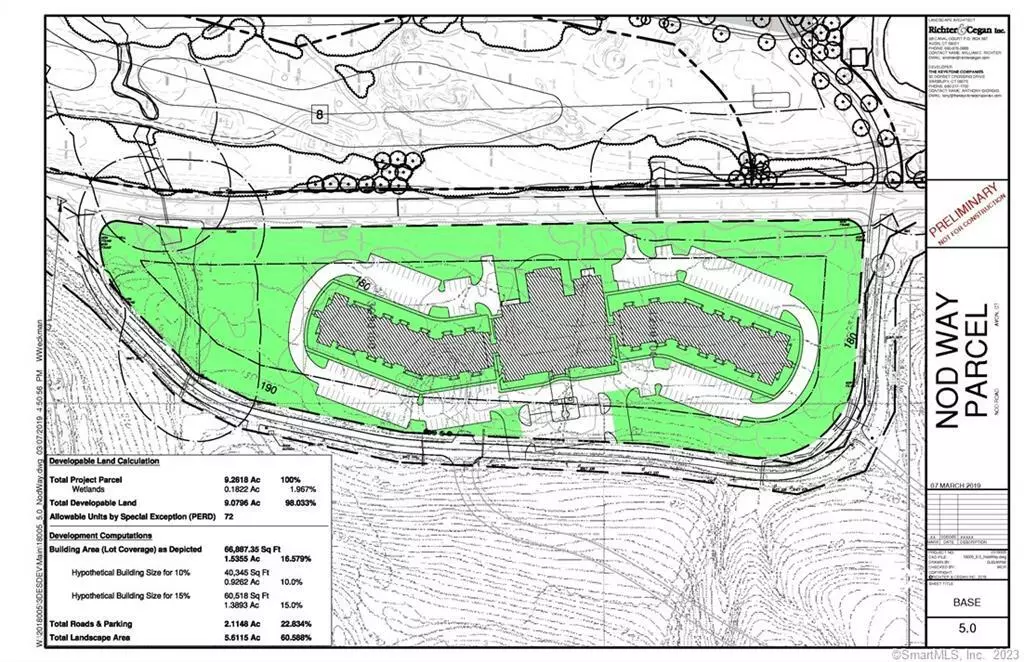 100 Nod Way is a 9.26-acre parcel located near the heart of Avon, and directly across from the Blue Fox Run Golf Course on the Farmington River. Previous plans submitted for approvals on 42 multi-family and 13 single family homes as an affordable housing project, the site is also ideal for a senior housing development. 100-125 units feasible for an 8-30g project. The parcel is zoned agricultural, but surrounded on three sides by existing multi-family developments in RU-2A zoning that also allows for Planned Elderly Residential Development or Assisted Living by special exception. All utilities available. The property is located just a quarter-mile north of the commercial corridor of Route 44, and less than a mile drive to the Avon Village Center. The site is just 25 minutes from Bradley International Airport and downtown Hartford.
