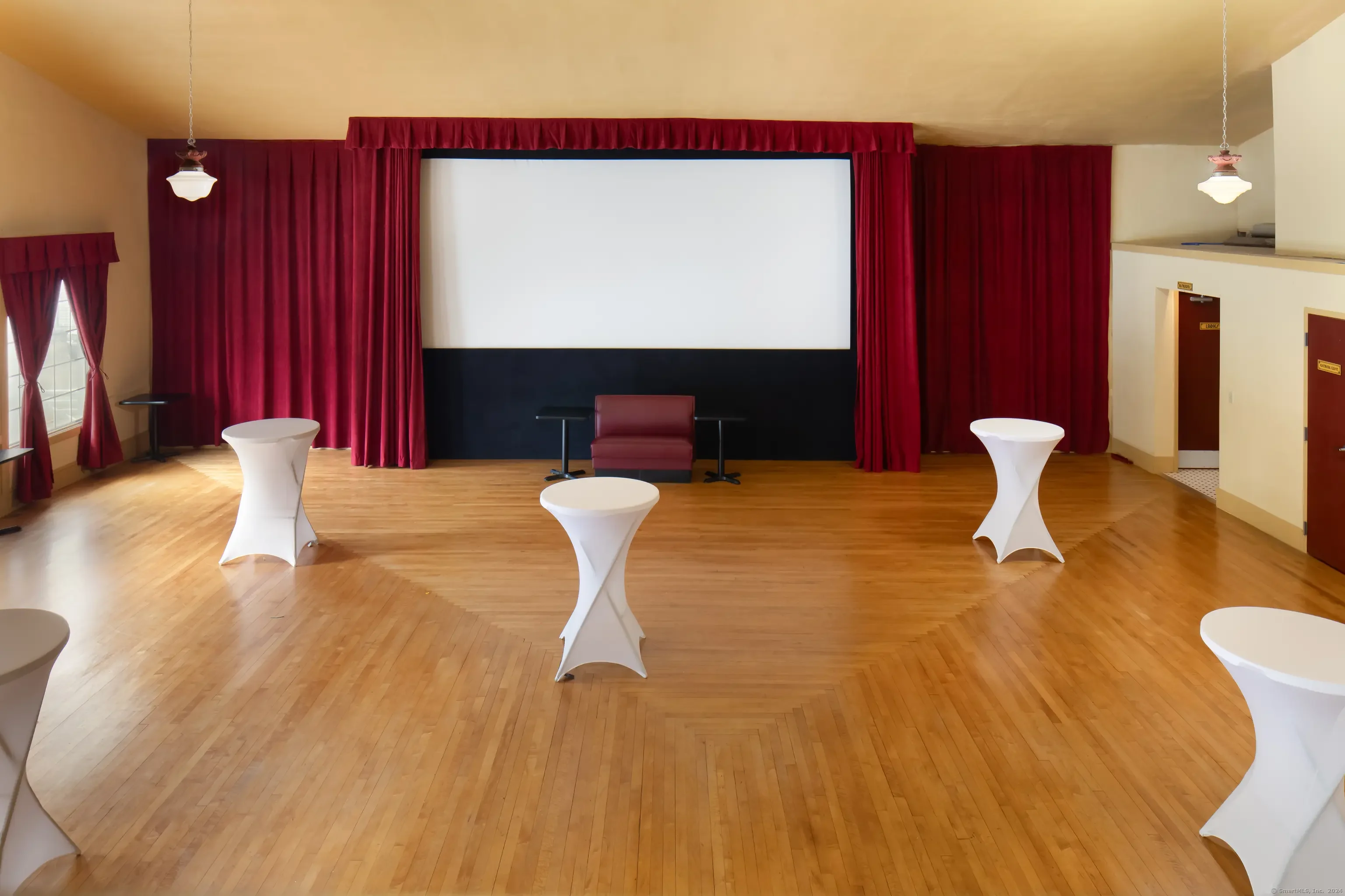 Calling all entrepreneurs: this is an amazing space. Perfect for a studio (dance, gym), office, art/photography studio, remote office, retail space - with plenty of room and the ability to collaborate with other building tenants. Join the excitement in North Canaan. Up and coming Railroad St is the home to many businesses. This rental opportunity is available on the second floor ("ballroom" only) of the historic Colonial Theatre. Centrally located with it's own private parking lot shared with the other theatre tenants and patrons. Approximately 1500 sq feet (not including bathrooms/kitchenette) with hardwood floors throughout. The space has a private stairwell / exit directly into private parking lot owned by the theatre in the heart of North Canaan. The tenant may use the parking lot for their own use and their Clients. Space has access to two seperate/private restrooms. The space also has a kitchenette area with small sink and counter space. The building is shared with multiple tenants including: movie theatre/event space, At Home in the Studio and two other available rental units. Bring your imagination and enthusiasm and be part of the great renaissance of North Canaan. To be negotiated separately for use: large projection screen, projector, surround sound and other AV equipment. If the tenant wants to use the equipment it would need to be negotiated separately and is not included in the monthly rent/agreement.