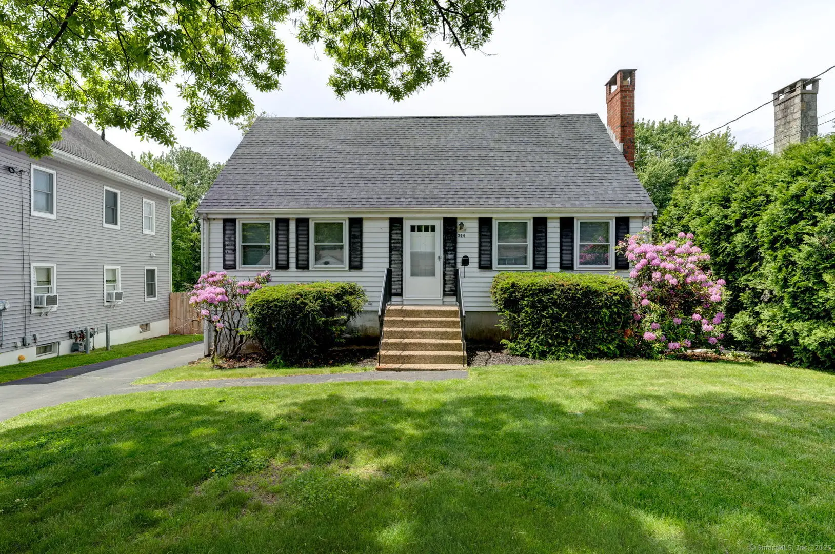 CHARMING CUSTOM BUILT 4 BEDROOM 2FULL BATH FRESHLY PAINTED CAPE COD ON AN 'OASIS' LIKE LOT.THIS HOME FEATURES TWO SPACIOUS BEDROOMS UPSTAIRS AND PRIMARY BEDROOM WITH WALK IN CLOSET. HARDWOOD FLOORS. ONE FULL BATH UPSTAIRS LEVEL.ON THE MAIN LEVEL THERE IS A SUNNY EAT-IN KITCHEN WITH A VIEW OF THE LUSH GREEN BACKYARD FOR SUMMER ENTERTAINING. FULL BATH ALSO ON MAIN LEVEL. TWO MORE GOOD SIZED BEDROOMS ON MAIN LEVEL WITH PLENTY OF CLOSET SPACE AND HARDWOOD FLOORS. FIREPLACE AND HARDWOOD FLOOR IN THE LIVING ROOM.THE LOWER LEVEL IS PARTIALLY FINISHED AND HAS A WALK OUT TO THE BACK YARD.HOME HAS NEW ROOF,NEWER WINDOWS. A ONE CAR GARAGE. IT IS NEAR PARK AND WALKING TRAILS, WEST FARMS MALL, UCONN JOHN DEMPSEY HOSPITAL.