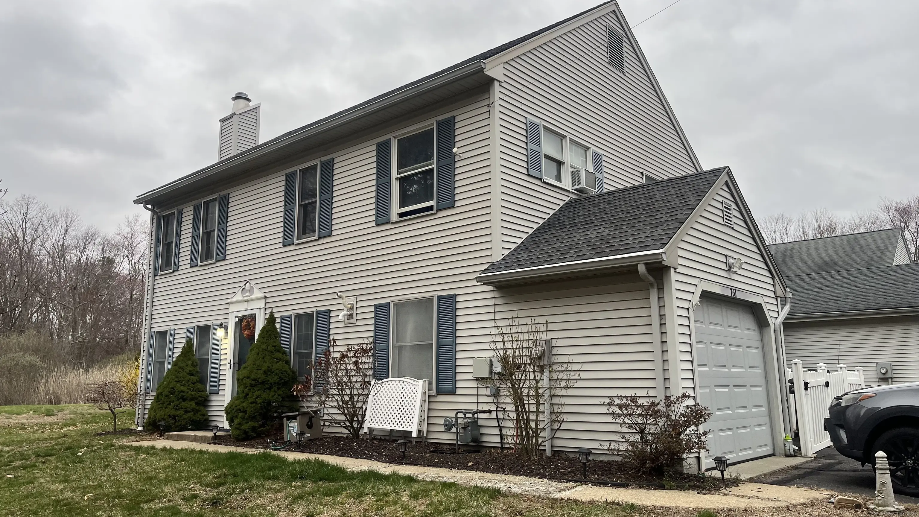 Updated eat-in kitchen with granite counters, breakfast bar, stainless steel appliances, bamboo flooring, and dining space. Family room features a fireplace with heatilator for added winter warmth. Large primary bedroom with walk-in closet and extra storage. Two additional bedrooms and full bath upstairs. One-car garage and first-floor laundry. HOA covers lawn care in shared areas; backyard maintenance is owner's responsibility.