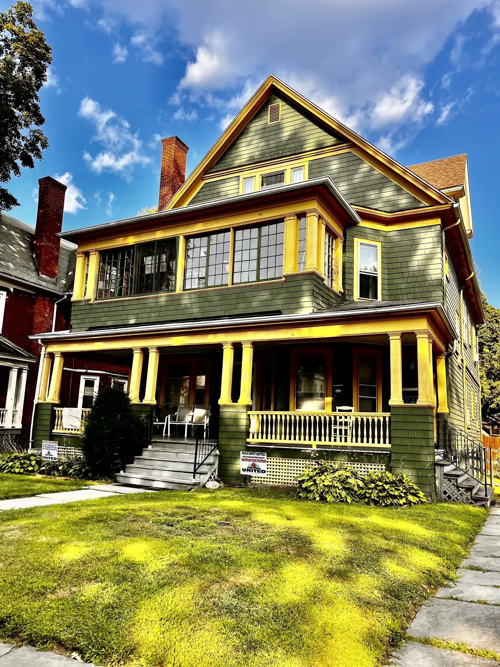 West end 2 family near Elizabeth Park. Three bedrooms, 1.5 baths on first floor, living room w fireplace, dining room and kitchen. Large front porch on first floor, laundry hook up in basement. 2nd floor has living room with fireplace, family room, front porch, dining room, kitchen w washer dryer in pantry area, full bath and two bedrooms. 2nd floor has staircase to 3 additional bedrooms and attic storage on 3rd floor. Bath possible on 3rd floor , plumbing in place for. Garages and additional parking in back. Separate furnace and utilities.