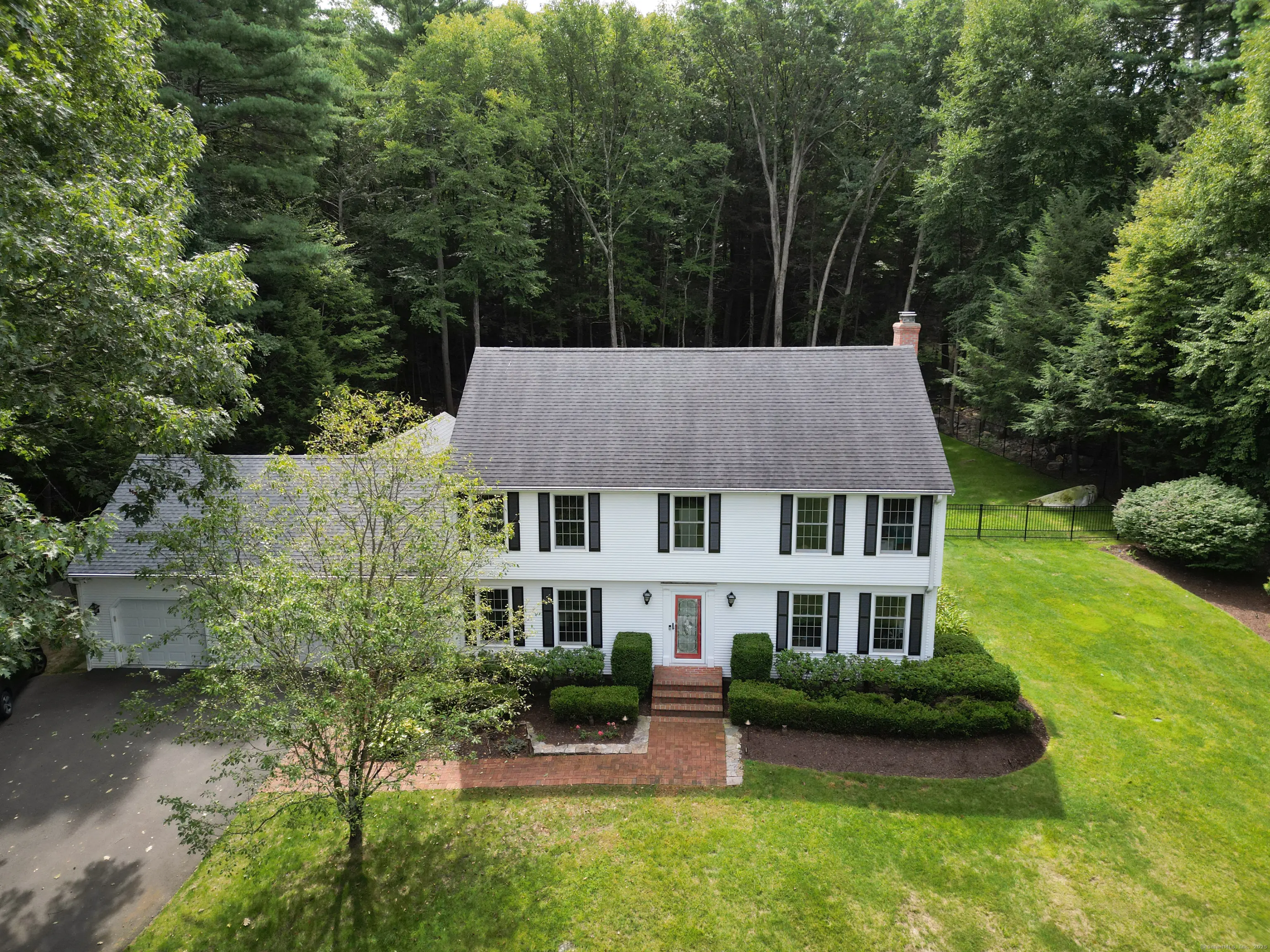 Welcome to 95 Cold Spring Road, where modern innovation meets timeless luxury in the heart of Avon, CT. Discover a home where style, comfort, and technology come together seamlessly. Featuring geothermal heating and Dow solar shingles, this residence delivers energy efficiency without compromise. Smart automation with voice control, Lutron lighting, Hunter Douglas motorized blinds, Ring surveillance, and a Tesla charger elevate everyday living. Over 40 trees cleared to open up the yard, complemented by fresh landscaping, a brand-new fence, and a state-of-the-art sprinkler system. Custom low-voltage lighting highlights the home's exterior, with illuminated front and rear patios, granite light posts, and a granite mailbox post. In the evening, accent lighting makes the front trees glow while stately posts guide you up the driveway for a dramatic entrance. Inside, enjoy hardwood flooring, elegant crown molding, and a gourmet kitchen with Wolf & Subzero appliances, granite countertops, and custom cabinetry. Relax in the sunroom or retreat to the expansive patio with built-in grill and a private backyard oasis. The flexible five-bedroom layout includes a spacious primary suite, three additional bedrooms upstairs, and a versatile main-level in-law suite with direct patio access. Luxuries abound with radiant-heated bathroom floors, Bluetooth-enabled illuminated mirrors, and Andersen windows with EcoGuard insulation. Located in one of Connecticut's most sought-after communities!