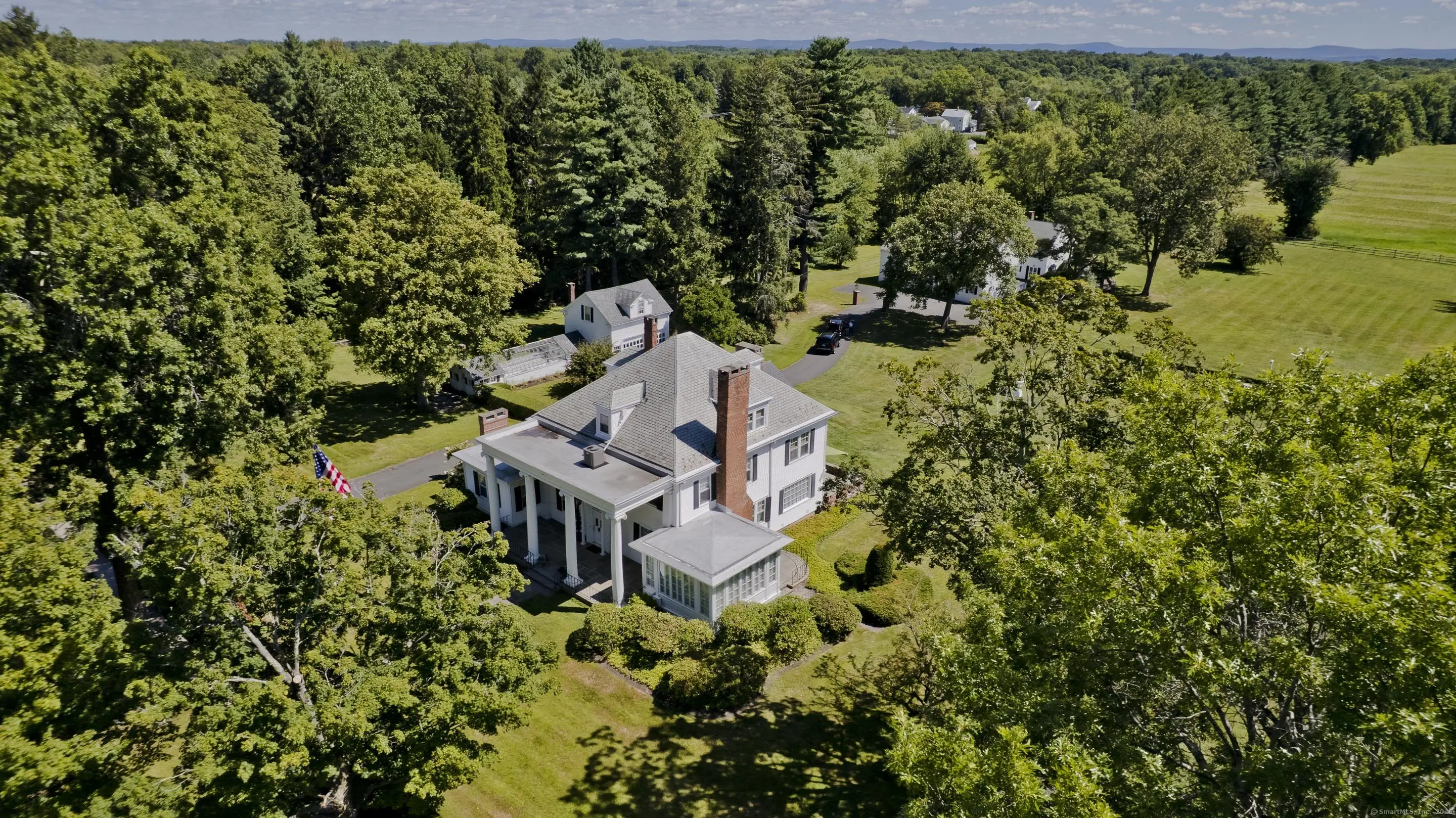 Once in a lifetime opportunity to own this stately property that has had a prominent presence on historic South Main St. for nearly a century! Beyond the entry gate you will find Eastwood Estates, a compound consisting of the stunning Georgian Colonial style main home, a 4-bedroom guest cottage, detached garage w/loft style apartment and adjoining greenhouse, in-ground pool w/accompanying pool house, tennis court and a 55' x 30' barn all situated in a park like setting. Prepare to be swept up in the architecture and attention to detail throughout the main home! The kitchen is complete w/fireplace, exposed brick, wooden beams and accentuated by a breathtaking chandelier. The flow of the dining room, living room & den make this the perfect home for hosting special occasions and creating lasting holiday memories with loved ones. Craftsmanship abounds in the wood paneled study w/built-in shelving and fireplace. Soak in the natural sunlight in the sun room w/full southern exposure and walls of windows - the perfect place to take in all seasons. The upper levels of the home house the 6 bedrooms and sitting areas as well as a large cedar closet. The partially finished lower level provides a more flexible, casual living space as well as a wine cellar and hot tub. Along the rear of the home is a bluestone patio accessible to the kitchen, dining room and den via french doors.