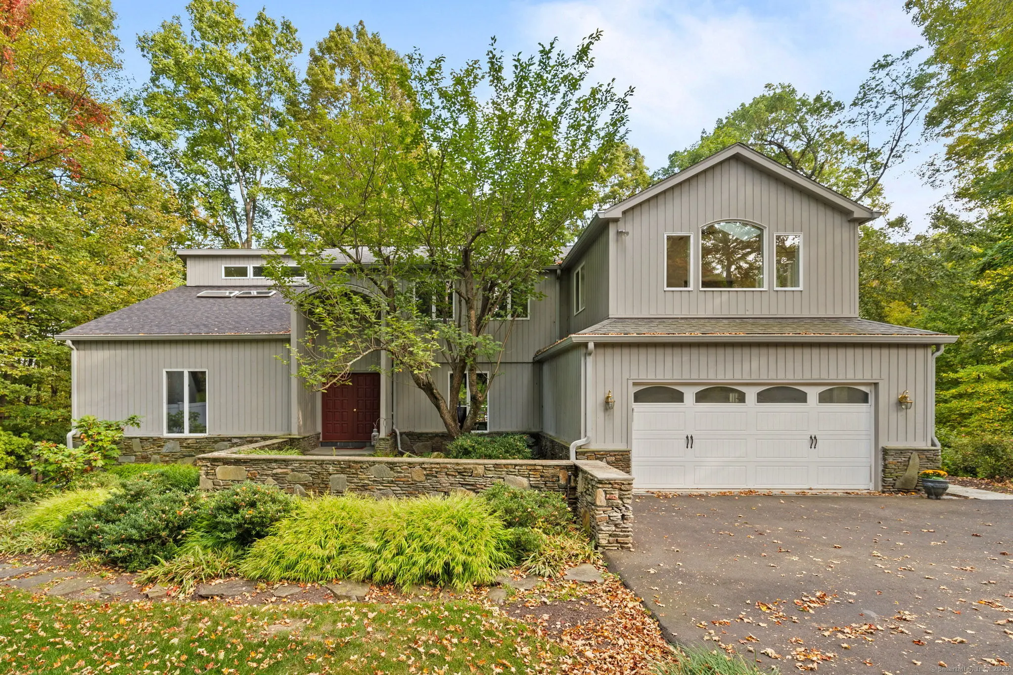 Peaceful contemporary living awaits at this unique home, set on a one-acre lot with direct access to the Canal Road path. Step through double front doors into a two-story foyer and living room flooded with natural light. Hardwood floors lead to the first of two inviting den spaces featuring a cozy gas fireplace and expansive windows overlooking the private backyard retreat. The dining room is ideal for entertaining and hosting gatherings. The kitchen offers a slate floor, stainless-steel appliances, an island with an eating bar, and a second gas fireplace. Two French doors offer access to the newly replaced composite deck-perfect for outdoor dining and relaxation overlooking the quiet, peaceful yard. An adjacent full bathroom and a generous laundry room with a pantry add convenience and functionality. Newly refinished hardwood floors complete the first floor. Upstairs, four comfortable bedrooms share a hall bathroom with double sinks. The primary suite has a remodeled bath with a rain shower, double sinks, and a walk-in closet. A sunroom with skylights, cherry floors, and a ceiling fan offers an ideal space for a home office, gym, or cozy sitting area. The partially finished walkout lower level features a third fireplace, a half bathroom, and abundant storage. Recent upgrades include a water heater (2019), a newer furnace (2019), and a new privacy fence and plantings in the front yard (2025). Located just minutes from West Hartford Center, and a