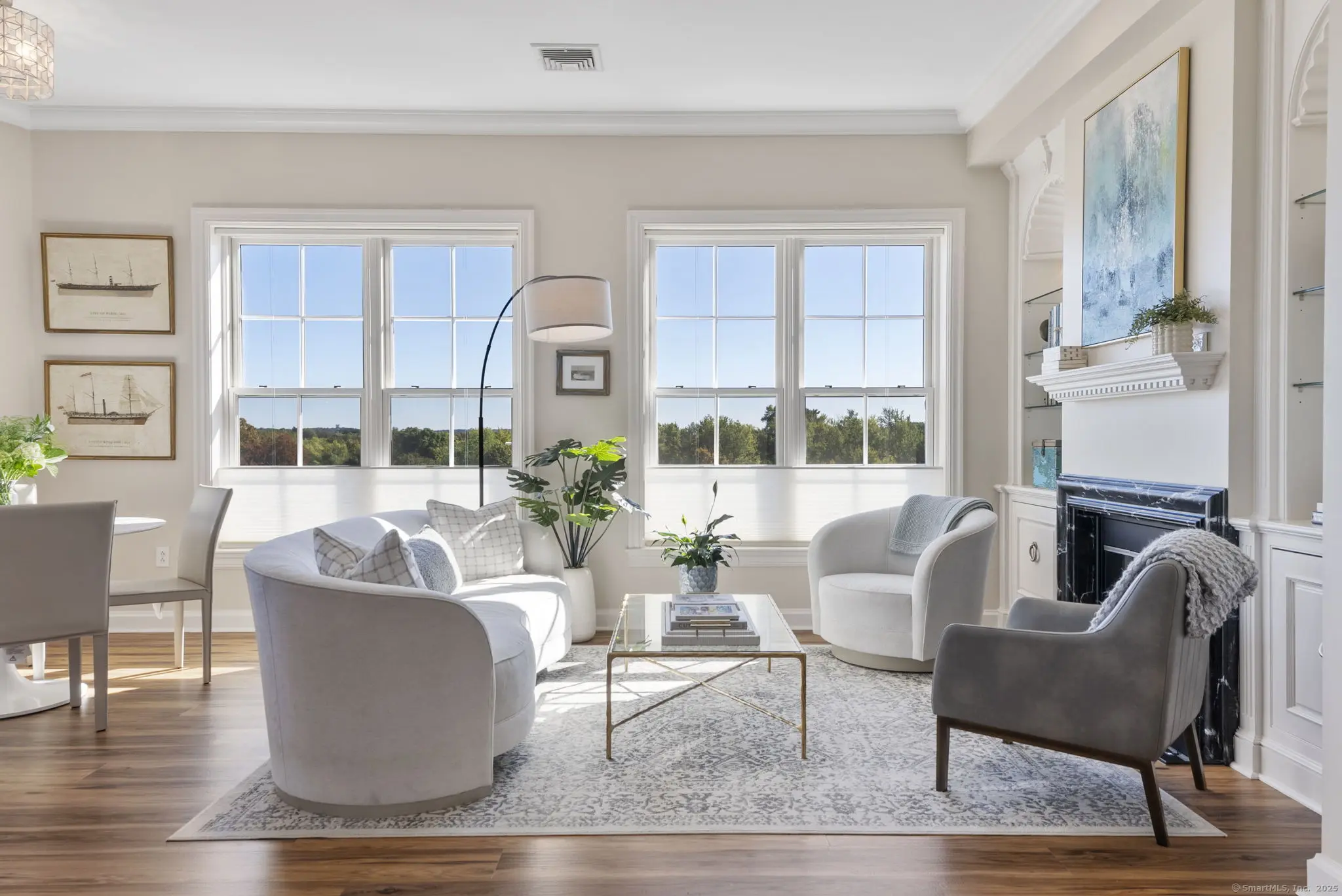 Welcome to 85 Memorial Road, Unit 512, a bright and inviting home in the heart of Blue Back Square. Situated on the top floor with 9+ ft ceilings throughout, this beautifully updated 2-bed 2-full-bath unit features abundant natural light streaming through oversized windows. The brand-new flooring creates a fresh, modern atmosphere. The open kitchen includes high-end appliances (Sub Zero fridge, Wolf oven/range, warming drawer, built-in microwave) and a breakfast bar. It has sliders that lead to a Juliette balcony, the perfect spot to enjoy sunrise with your morning coffee. The open-concept layout offers both comfort and flexibility, making it ideal for daily living or entertaining. Beautiful millwork and built-in bookcases surround the gas fireplace. Located in one of West Hartford's most sought-after neighborhoods, you'll enjoy easy access to top restaurants, shops, and cultural attractions just outside your door. Move-in ready and stylishly designed, this unit is the perfect place to call home. It includes a California Closet system in the primary bedroom closet, one parking space, in-unit laundry, and a storage unit. Additional parking in the garage is available for $150 per month.