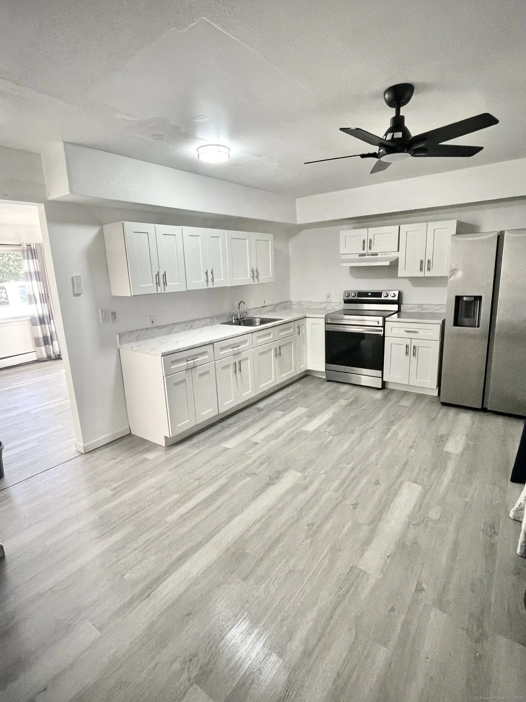 Newly Updated 3-Bedroom Apartment with Modern Finishes! Welcome home to this spacious and bright 3-bedroom, 1-bath apartment featuring a beautifully renovated kitchen with stainless steel appliances, sleek white cabinetry, and marble-look countertops. Enjoy in-unit laundry, two assigned parking spots, and stylish updates throughout, including fresh paint and luxury vinyl flooring. Conveniently located near shops, restaurants, and major routes-this move-in-ready unit offers both comfort and convenience for only $1,800/month.